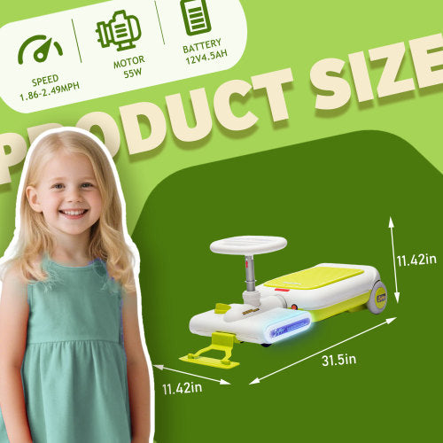 12V Cleaning Go Kart For Kids,55W Motor,Front with mop for cleaning,Length can extended by 6cm,Built in music and lighting functions,Provide a speed of 1.86-2.49MPH for kids aged 3-6 years old.